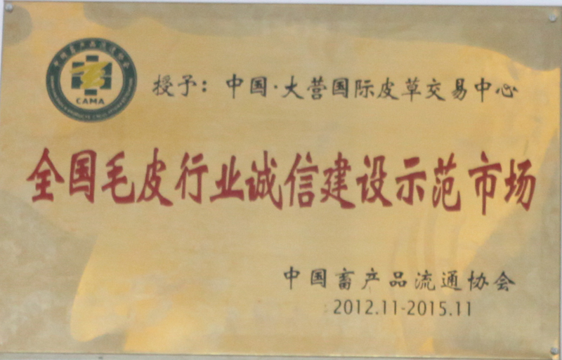 中国·大营国际皮草买卖中心荣获 全国皮毛行业诚信建设示范市场